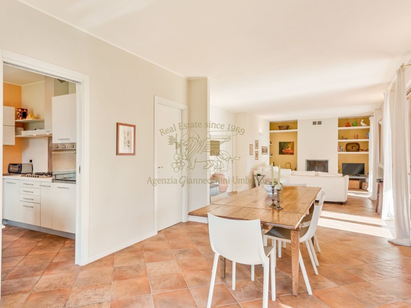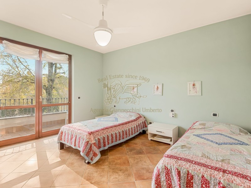 Distributed over two levels, the interiors are distinguished by their spaciousness, brightness, and high-quality finishes. On the ground floor, the living room with fireplace creates a warm and welcoming atmosphere, while the kitchen and dining area open to the outdoors, where a covered porch of approximately 48 square meters invites you to enjoy the home in all seasons, between moments of relaxation and conviviality.