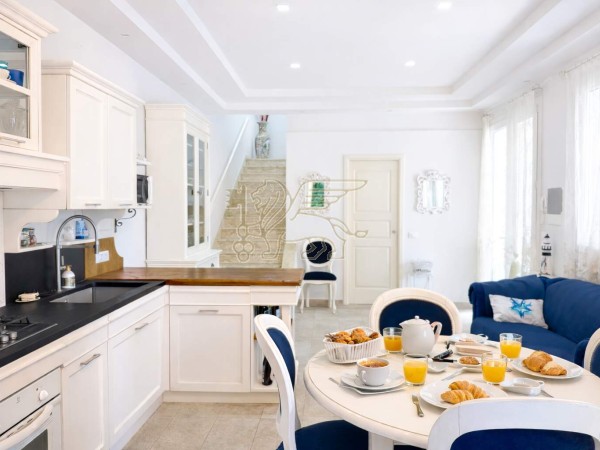 per circa 100 mq, ampia cucina, sala da pranzo guardaroba e bagno per