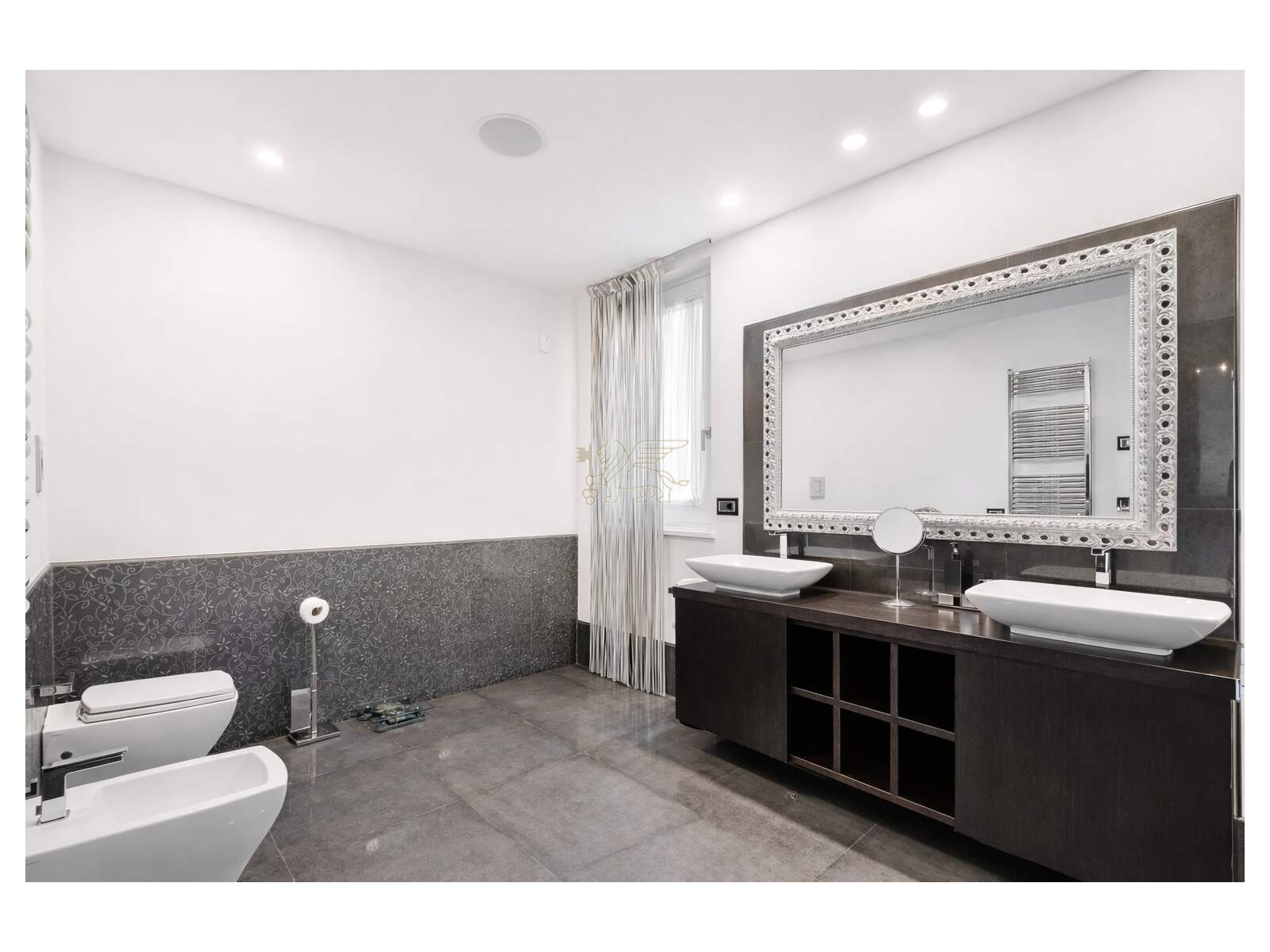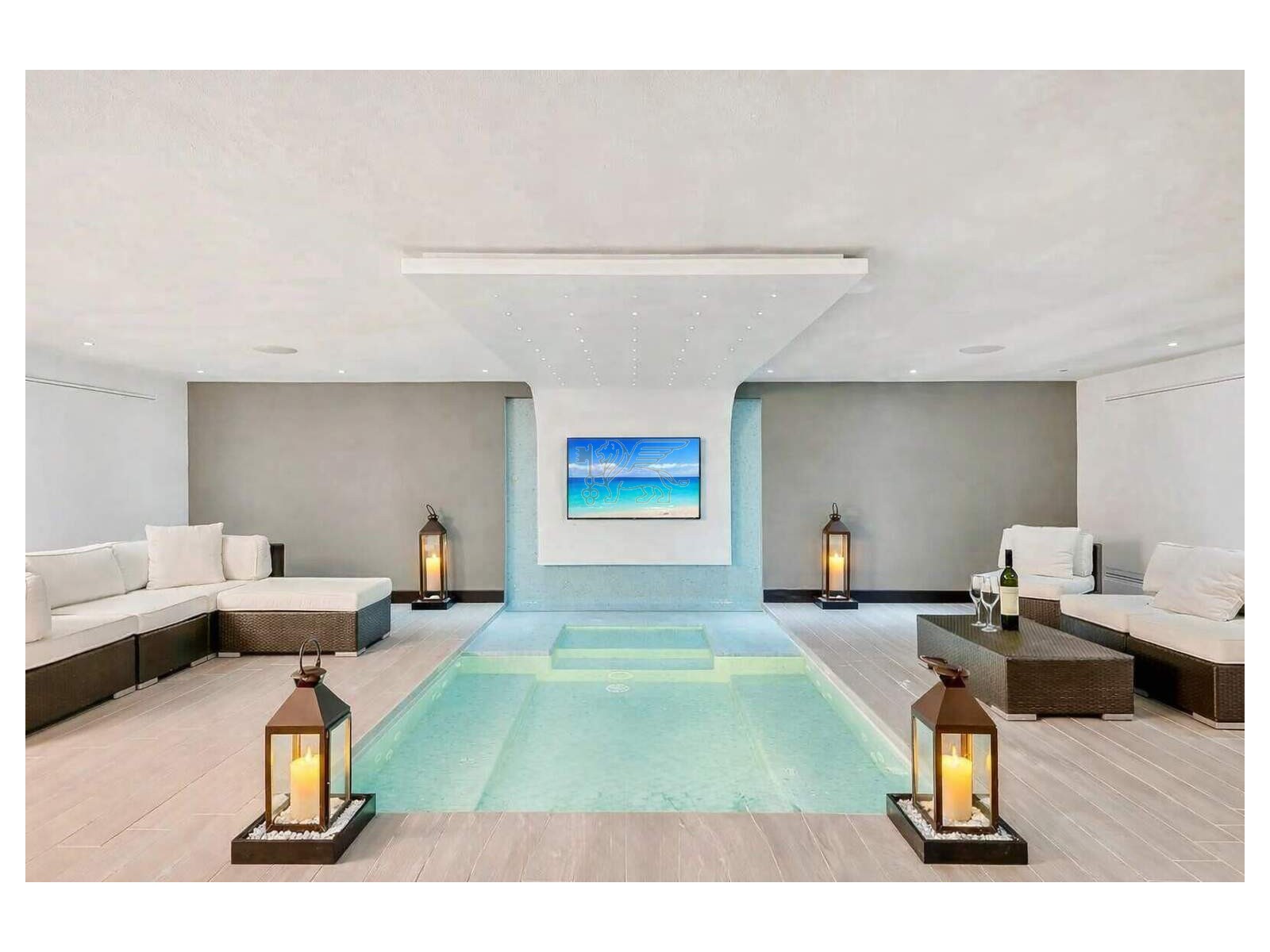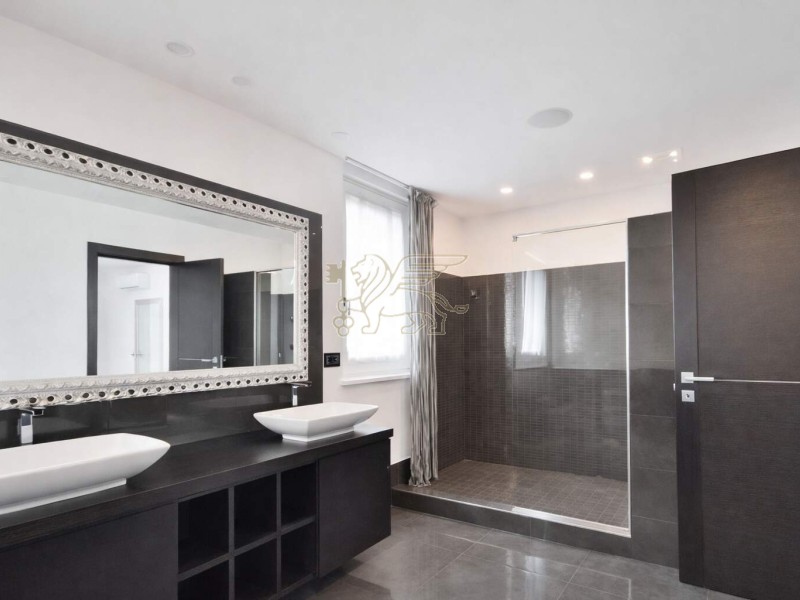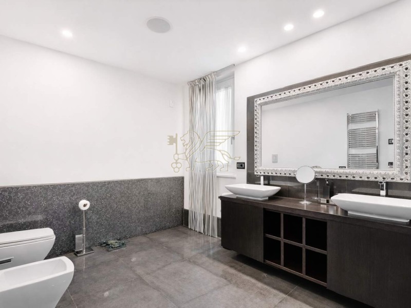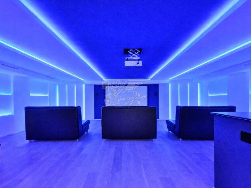 Il piano interrato rappresenta uno dei punti di forza della residenza, dedicato a benessere e lifestyle: palestra, spa con bagno turco in mosaico e vasca idromassaggio per 8 persone, oltre a una sala cinema con videoproiettore 4K, impianto surround e area bar. Completano il livello una camera per il personale con bagno, lavanderia e locali tecnici con accesso indipendente.