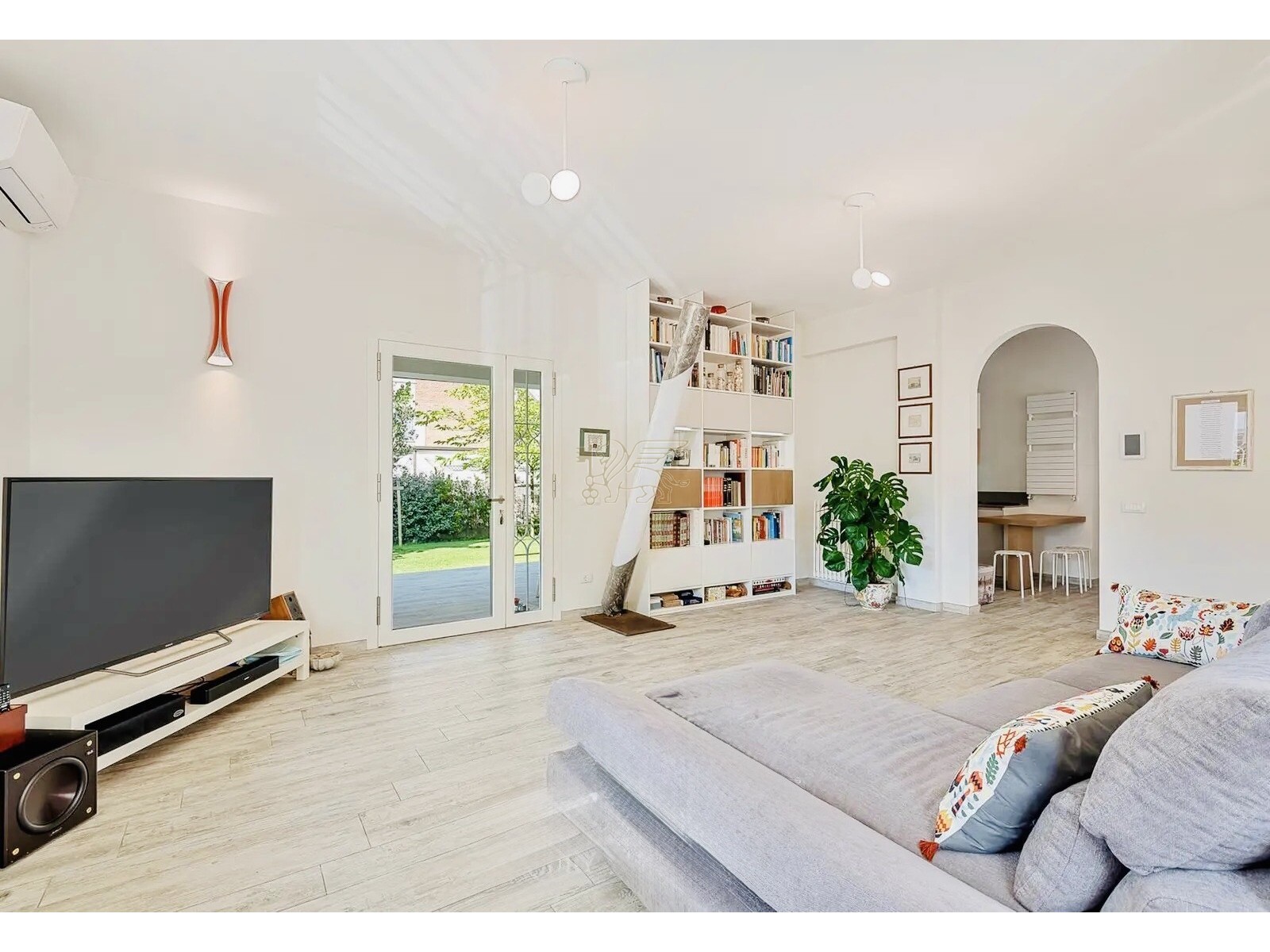 L’utilizzo dei toni chiari, la luminosità degli ambienti, donano un notevole senso di spazio e libertà a questa villa in vendita a Forte dei Marmi.