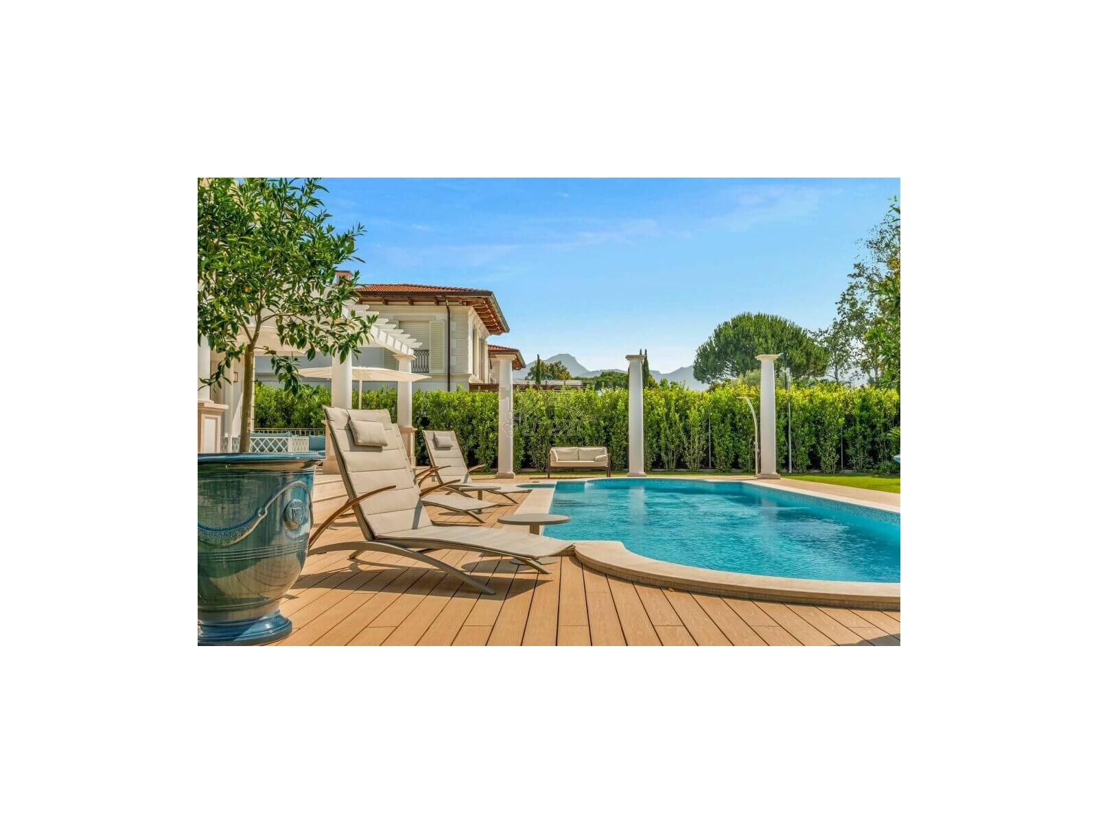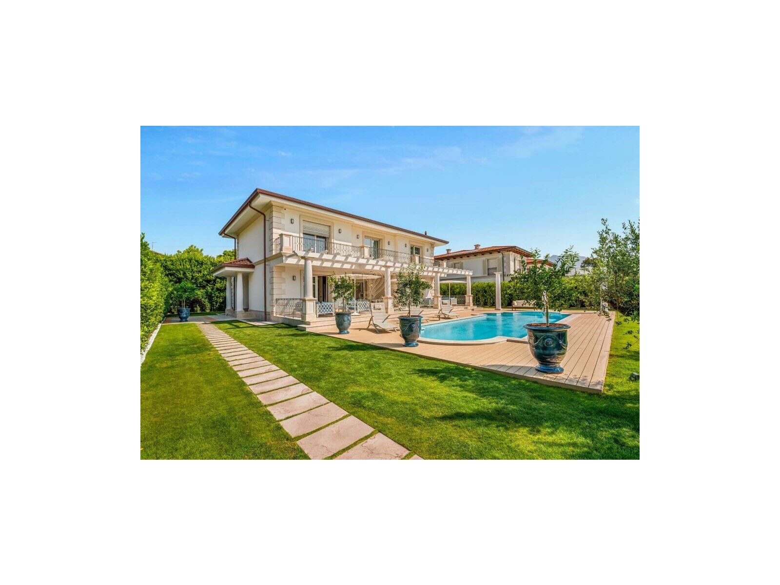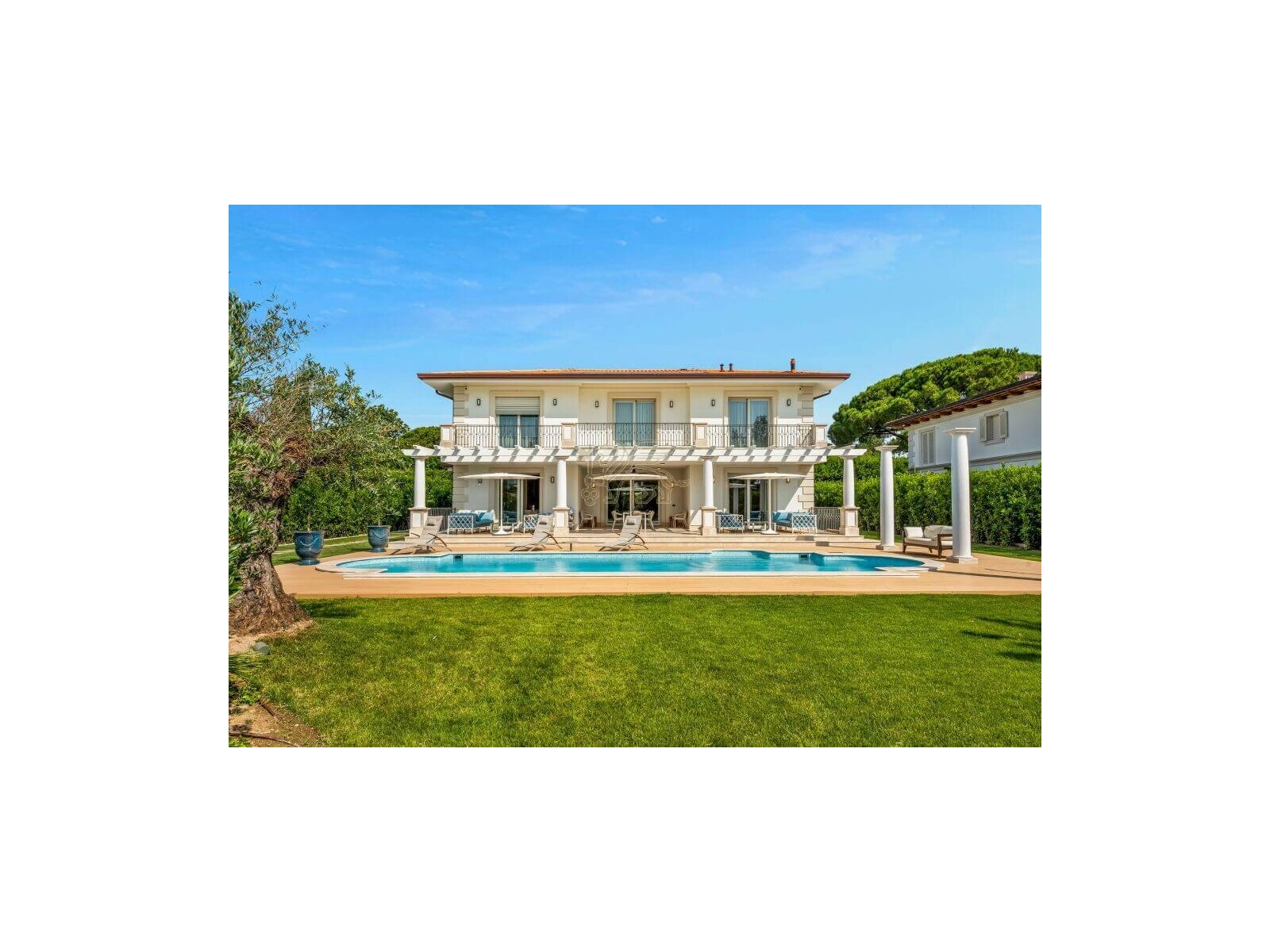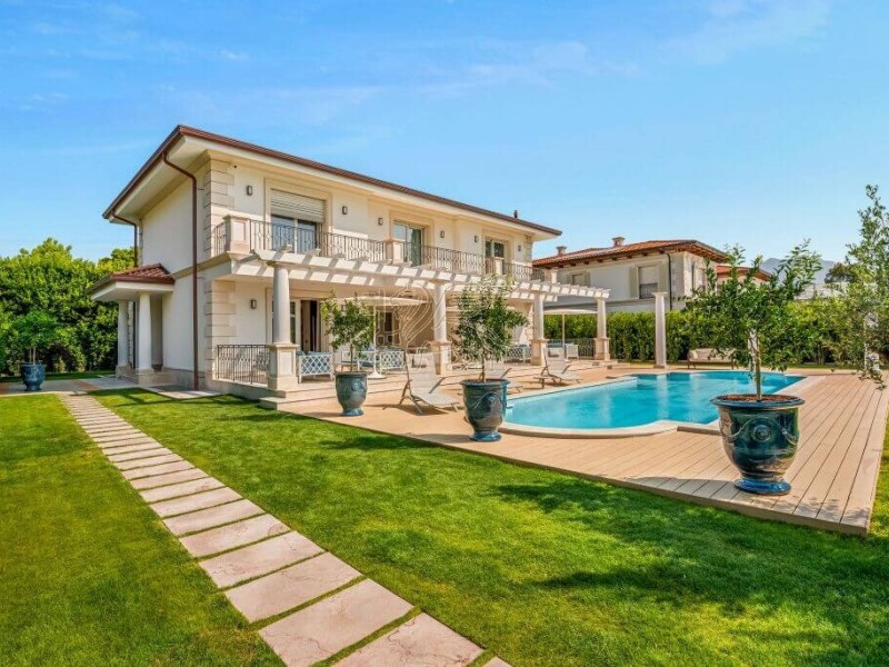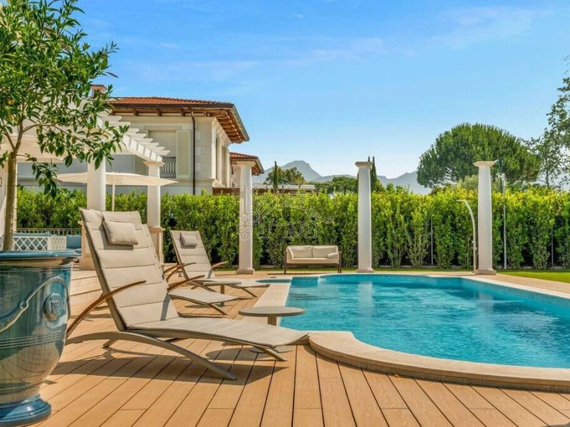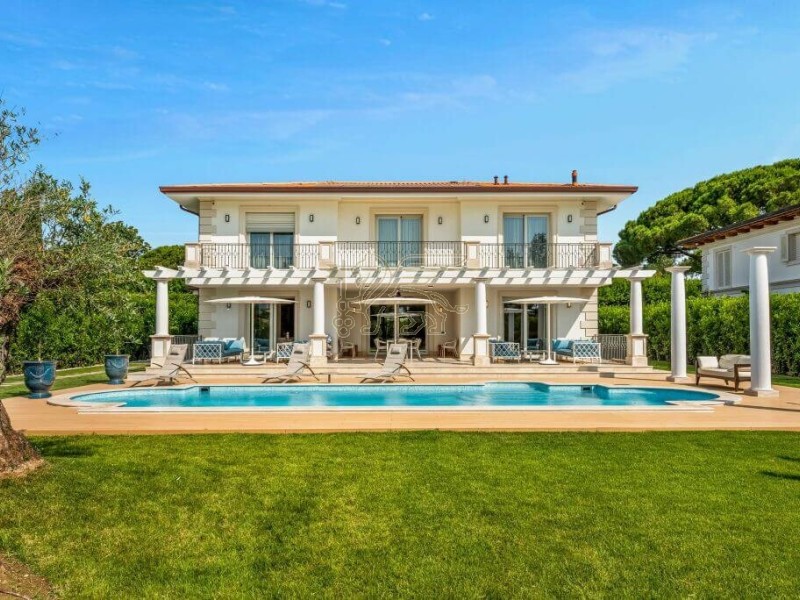 Questa villa di lusso in vendita a Forte dei Marmi si trova nell'esclusiva cornice di Roma Imperiale a 800 metri dal mare.