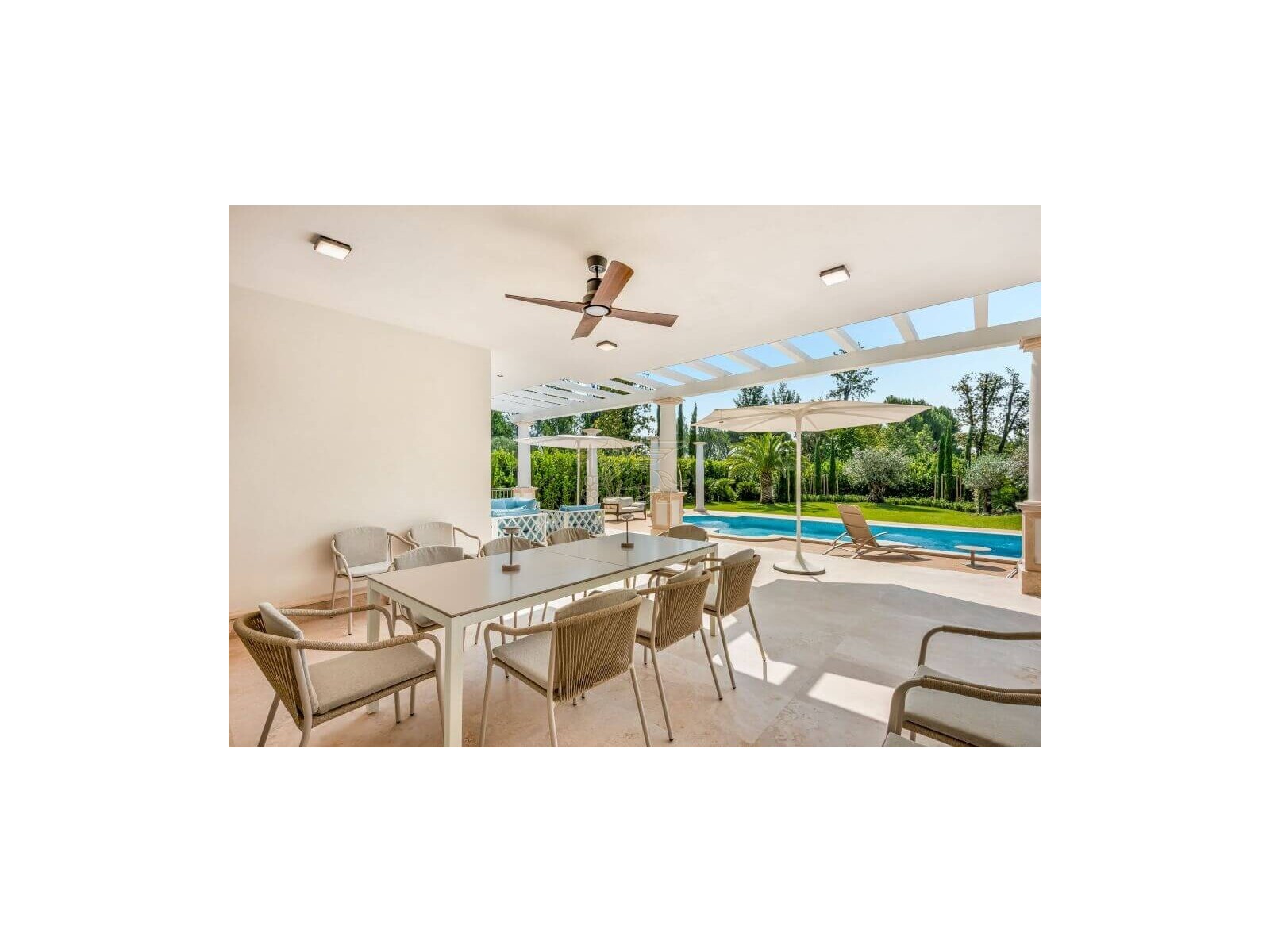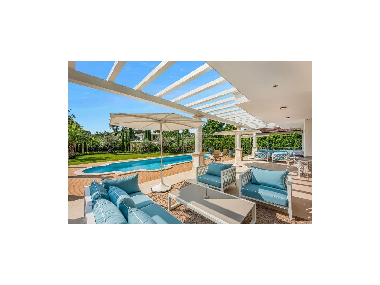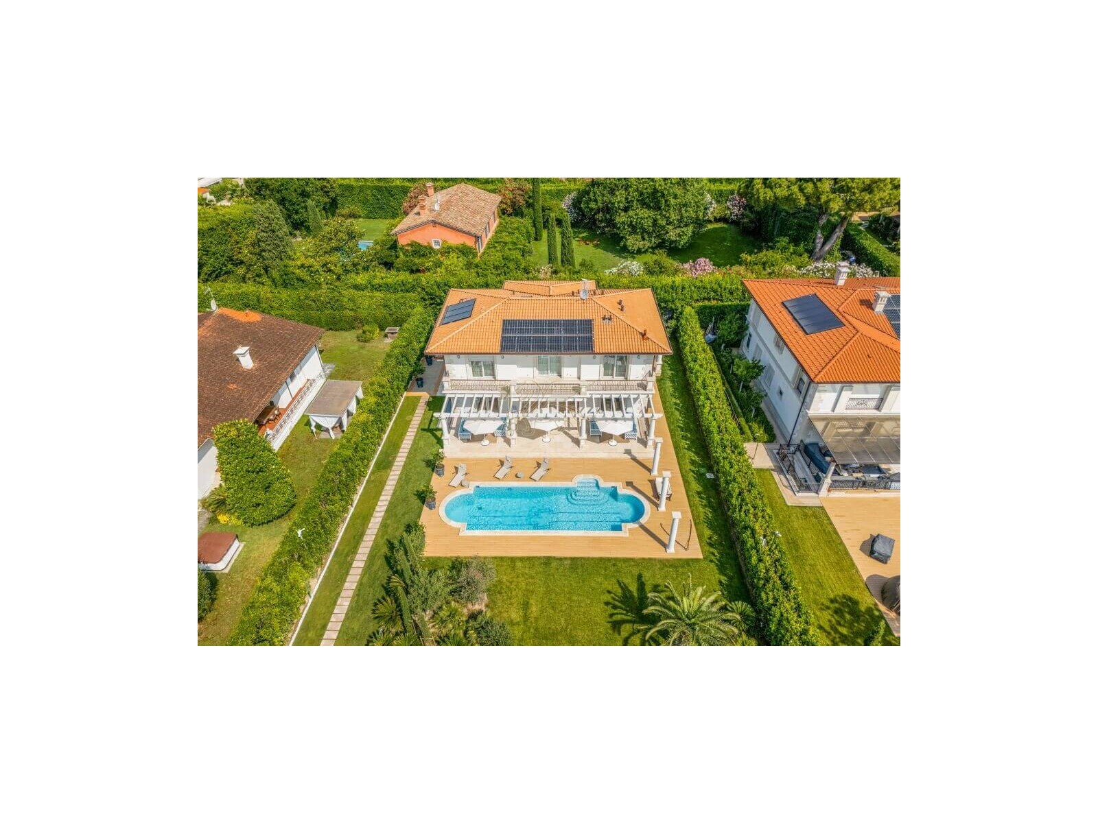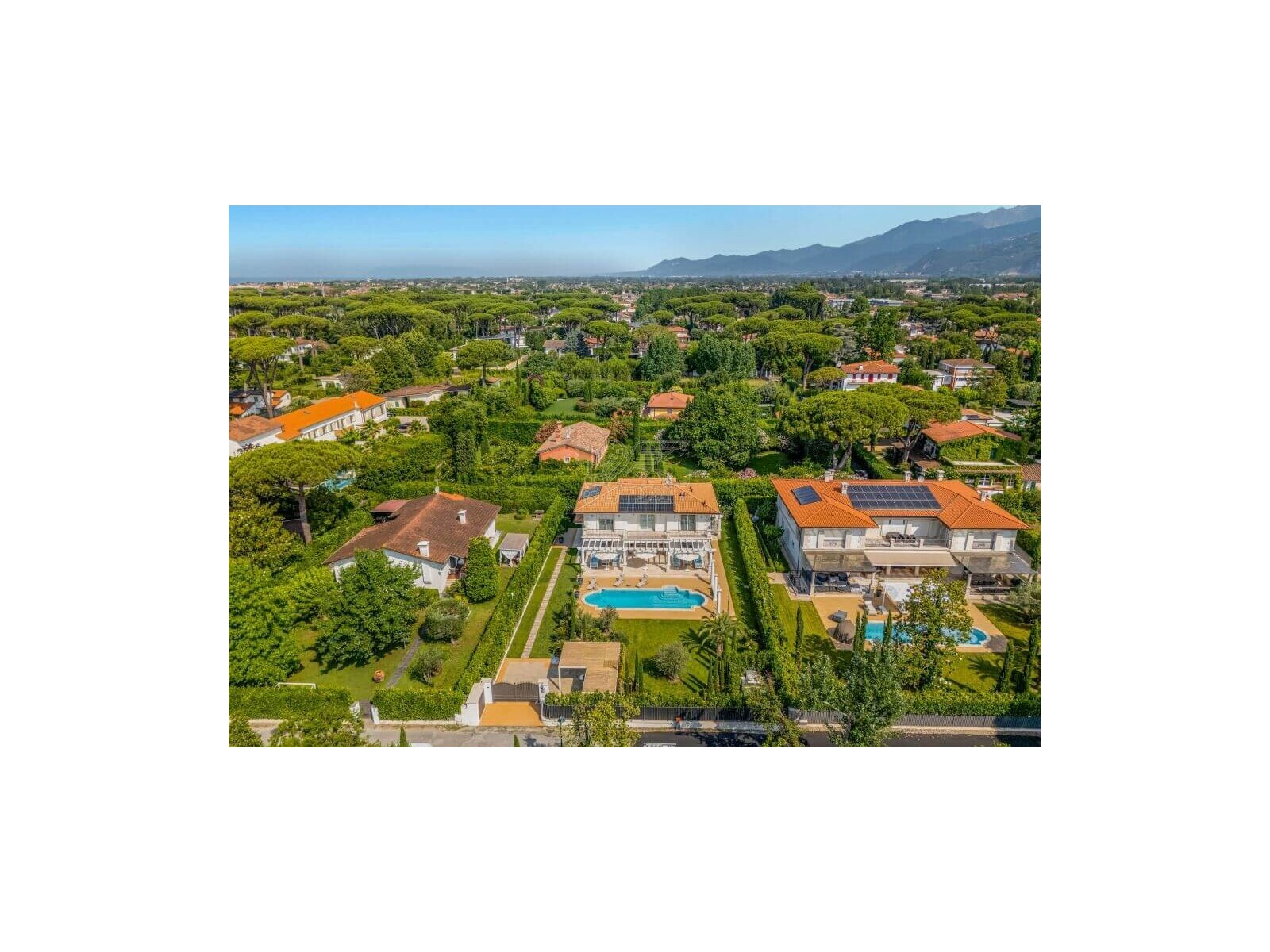 Questa villa di lusso in vendita a Forte dei Marmi si trova nell'esclusiva cornice di Roma Imperiale a 800 metri dal mare.