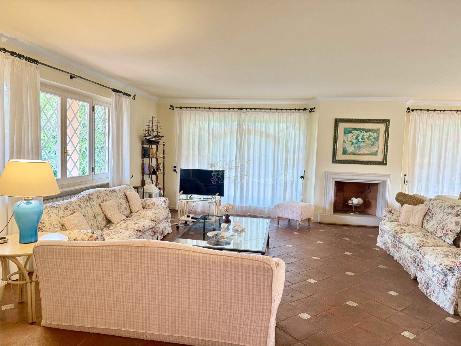 Questa villa in vendita a Forte dei Marmi è caratterizzata da pavimenti in cotto toscano, parquet in legno, bagni in ceramica conferendogli un ambiente sobrio, raffinato e accogliente.