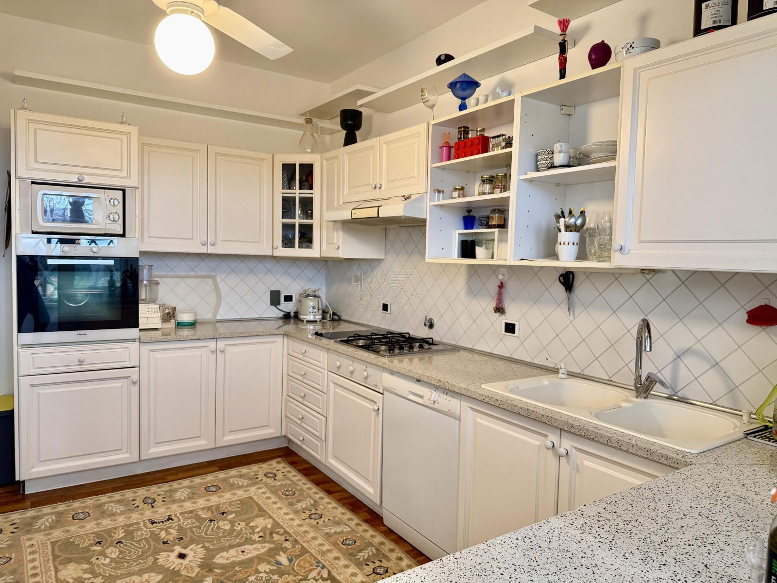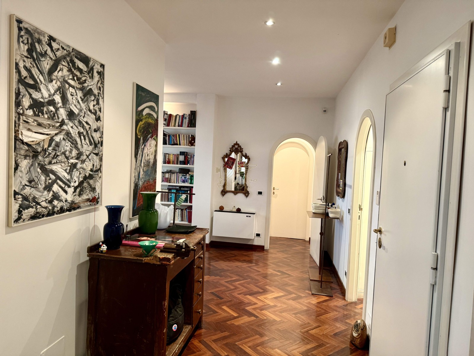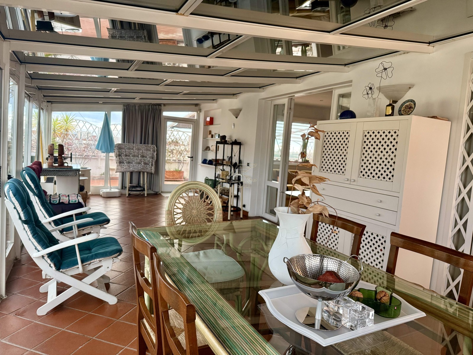 L’ingresso introduce a un’ampia e luminosa zona giorno, caratterizzata da spazi ben distribuiti, ideali per vivere e ricevere. Completano la zona living uno studio riservato, una cucina completamente attrezzata, un elegante giardino d’inverno e un pratico ripostiglio.
