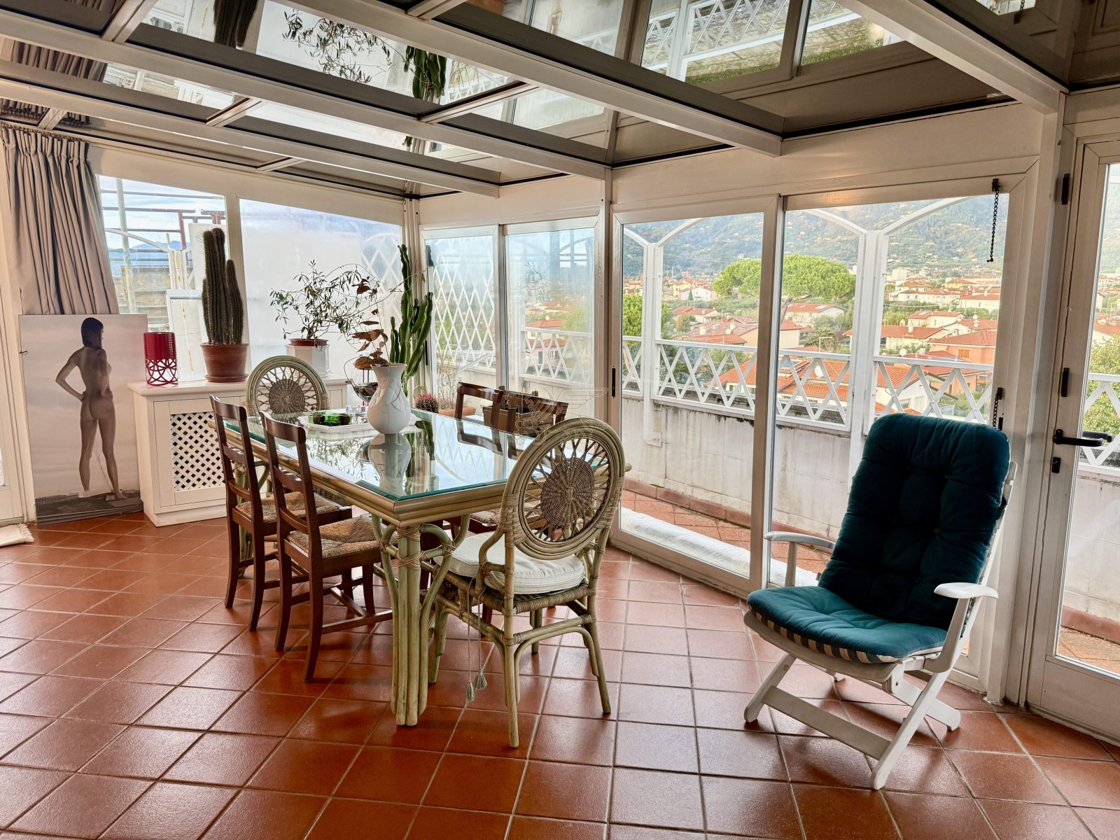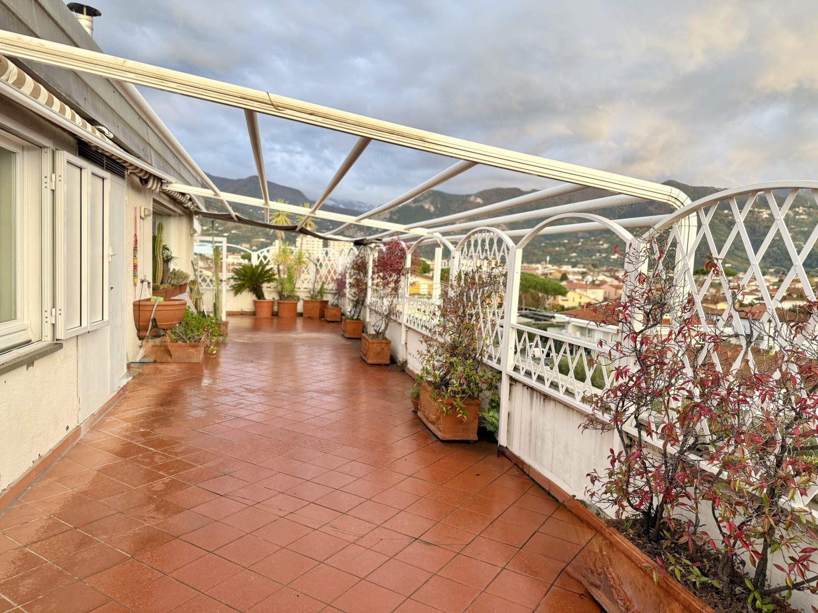 Il vero cuore dell’abitazione è la magnifica terrazza panoramica di circa 80 mq, direttamente accessibile dalla zona giorno. Da qui lo sguardo si apre sulle Alpi Apuane, regalando uno scenario suggestivo in ogni stagione: uno spazio esclusivo, perfetto per cene all’aperto, momenti di relax e convivialità in totale privacy.